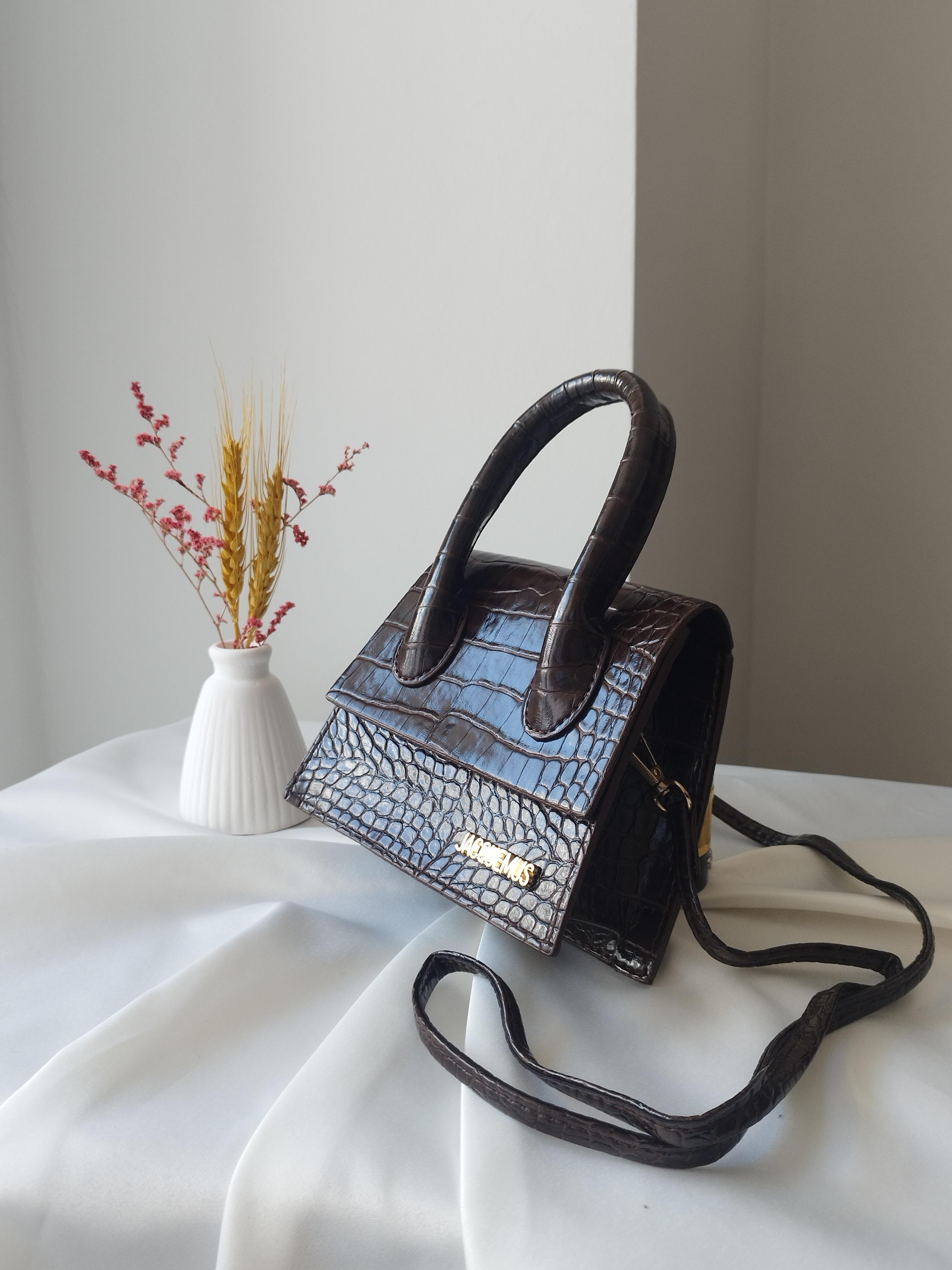Vivazzaluxe’un acı kahverengi croko mini kadın el ve omuz çantası, modern ve şık tasarımıyla öne çıkıyor. Croko dokusu, çantaya sofistike bir görünüm kazandırırken, kompakt boyutu günlük kullanım için pratiklik sağlar.