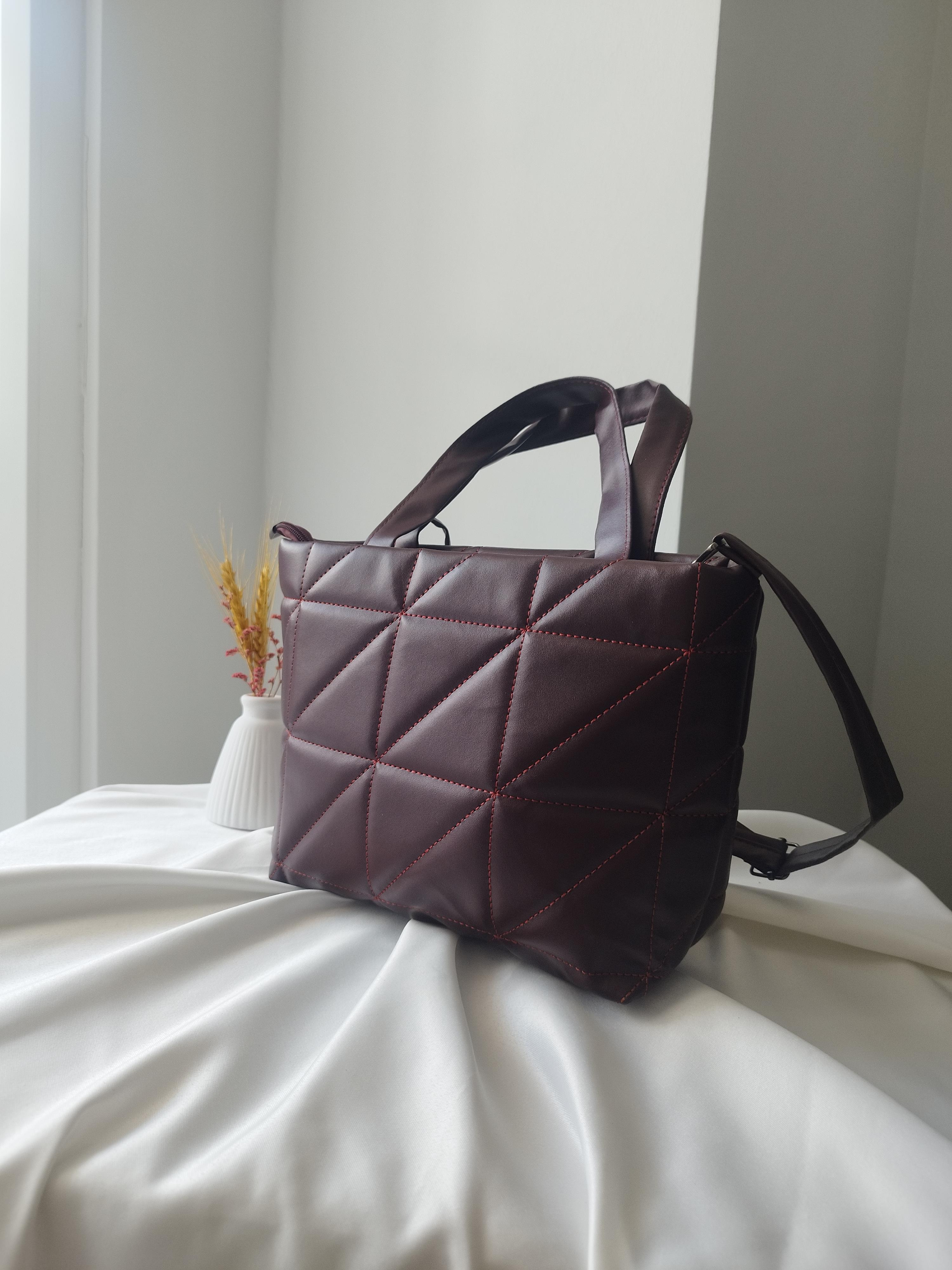 Deri Kapitone Model Kadın Omuz Çanta Bordo, şıklığı ve modern dokunuşu bir araya getiren zamansız bir tasarımdır. Bordo rengin güçlü ve zarif tonları, kapitone desenin sofistike görünümüyle birleşerek stilinizi ön plana çıkarır. Kaliteli suni deri malzemesi, fermuarlı kapanış detayı ve geniş iç hacmi ile günlük yaşamda hem şık hem de fonksiyonel bir kullanım sunar. İş kombinlerinden özel davetlere kadar her ortamda rahatlıkla tercih edebilirsiniz.