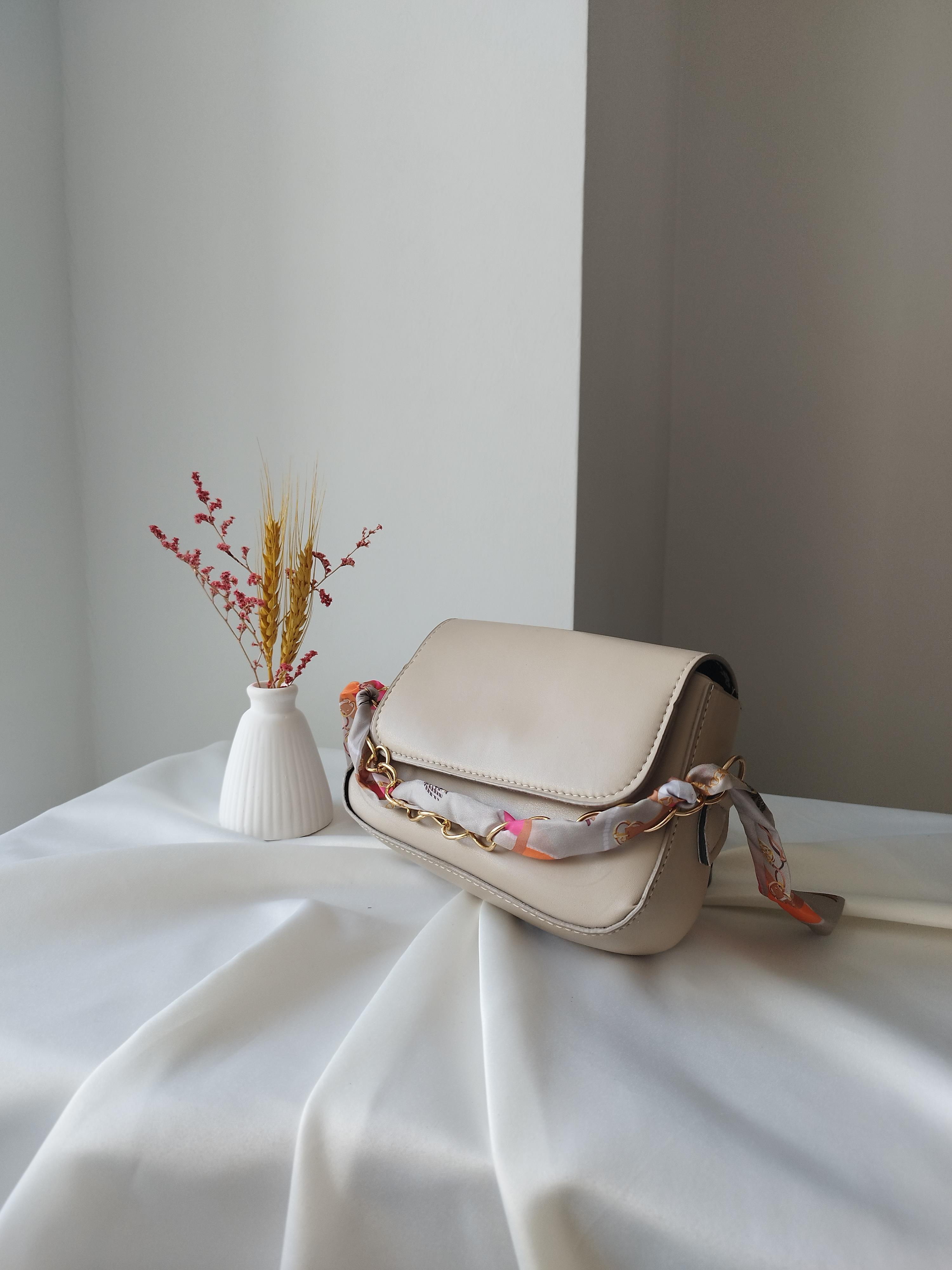 Vivazzaluxe’un bej mini baget kadın el ve omuz çantası, fular detayı ve zincir askısıyla zarif bir şıklık sunar. Kompakt boyutu sayesinde günlük kullanım için oldukça pratik olup, modern tasarımıyla özel günlerde de stilinizi tamamlar.