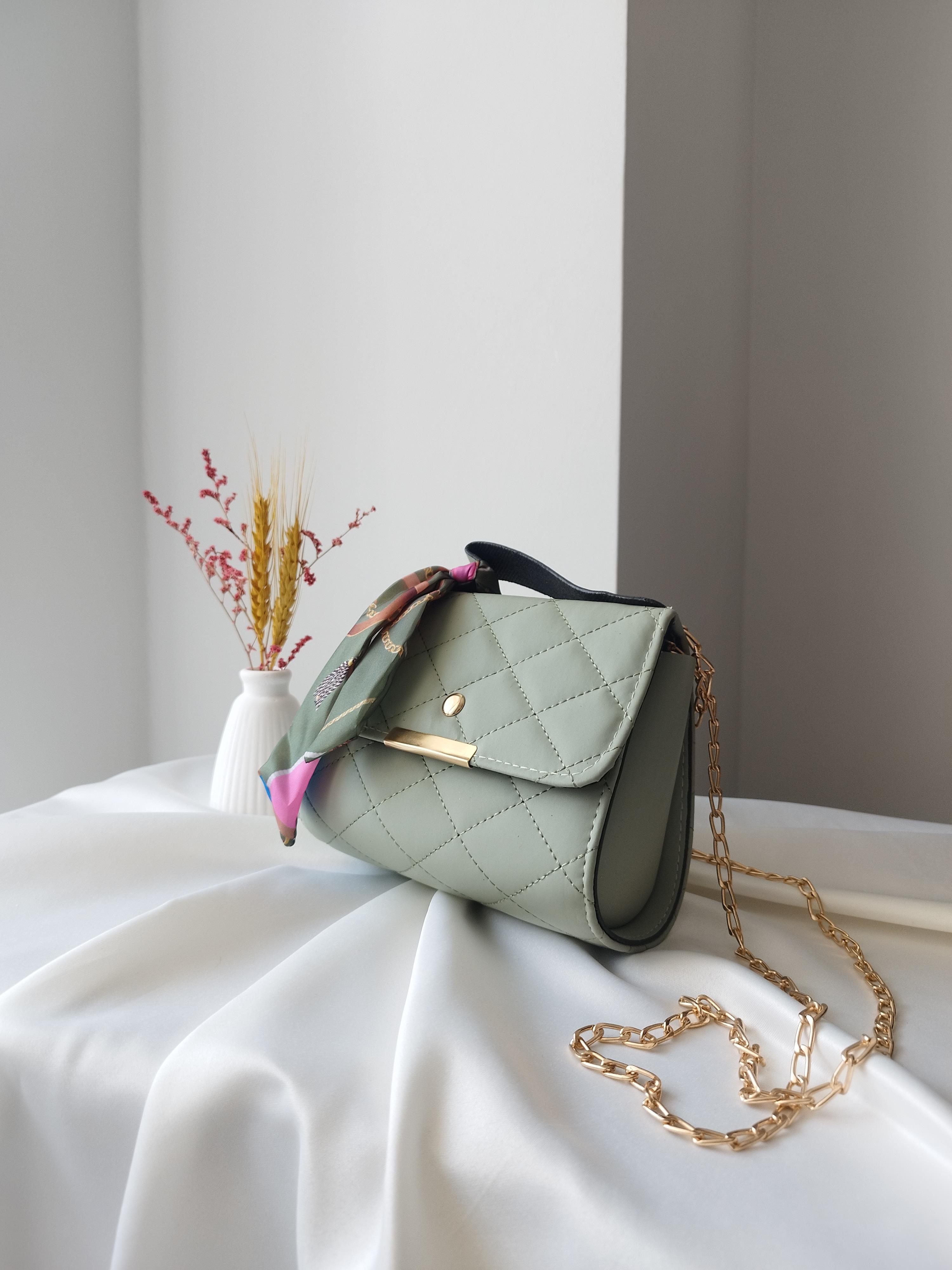 Mini boyutuyla şıklığı ön plana çıkarırken, hem elde hem omuzda kullanılabilmesi sayesinde günlük hayatta pratiklik sunar. Su yeşilinin ferah tonları, fular detayıyla birleşerek modern ve sofistike bir görünüm kazandırır.