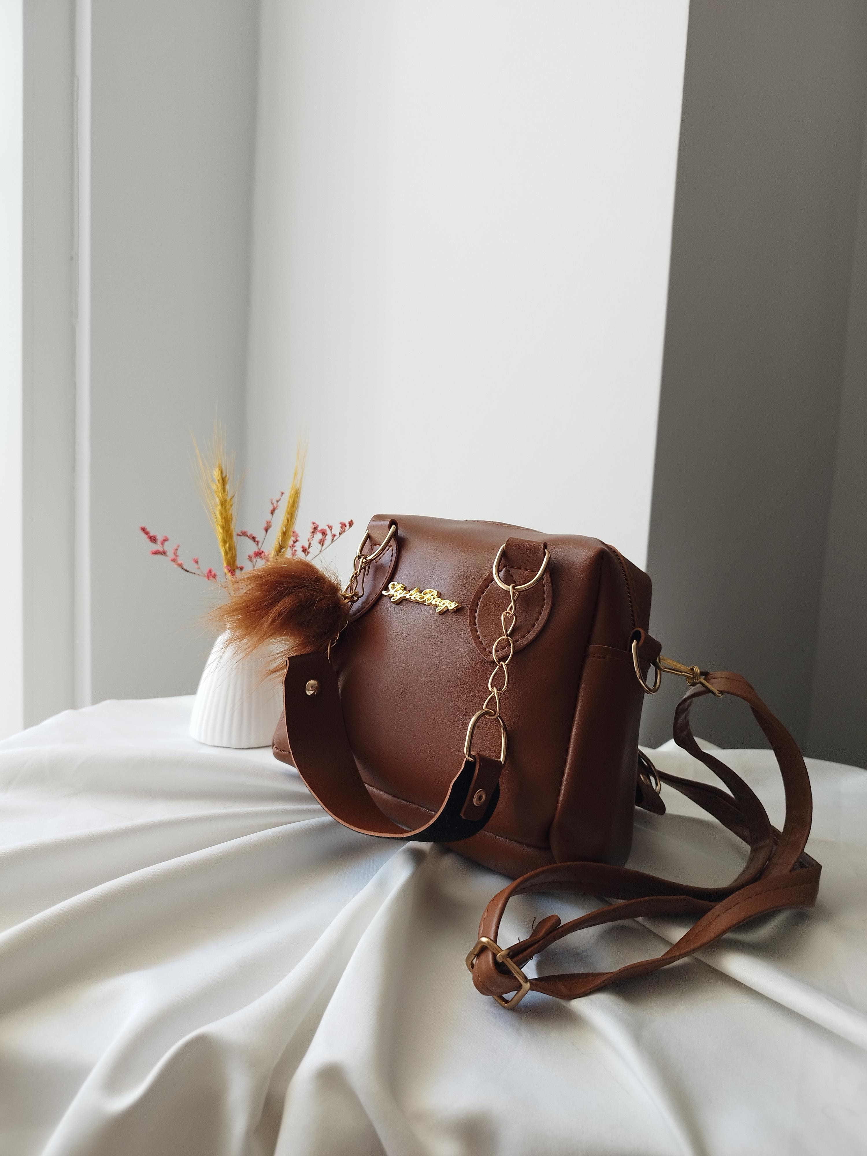 Kahverenginin zamansız şıklığıyla tasarlanan mini puf charm omuz çanta, günlük ve özel kombinlerin vazgeçilmezi olacak.