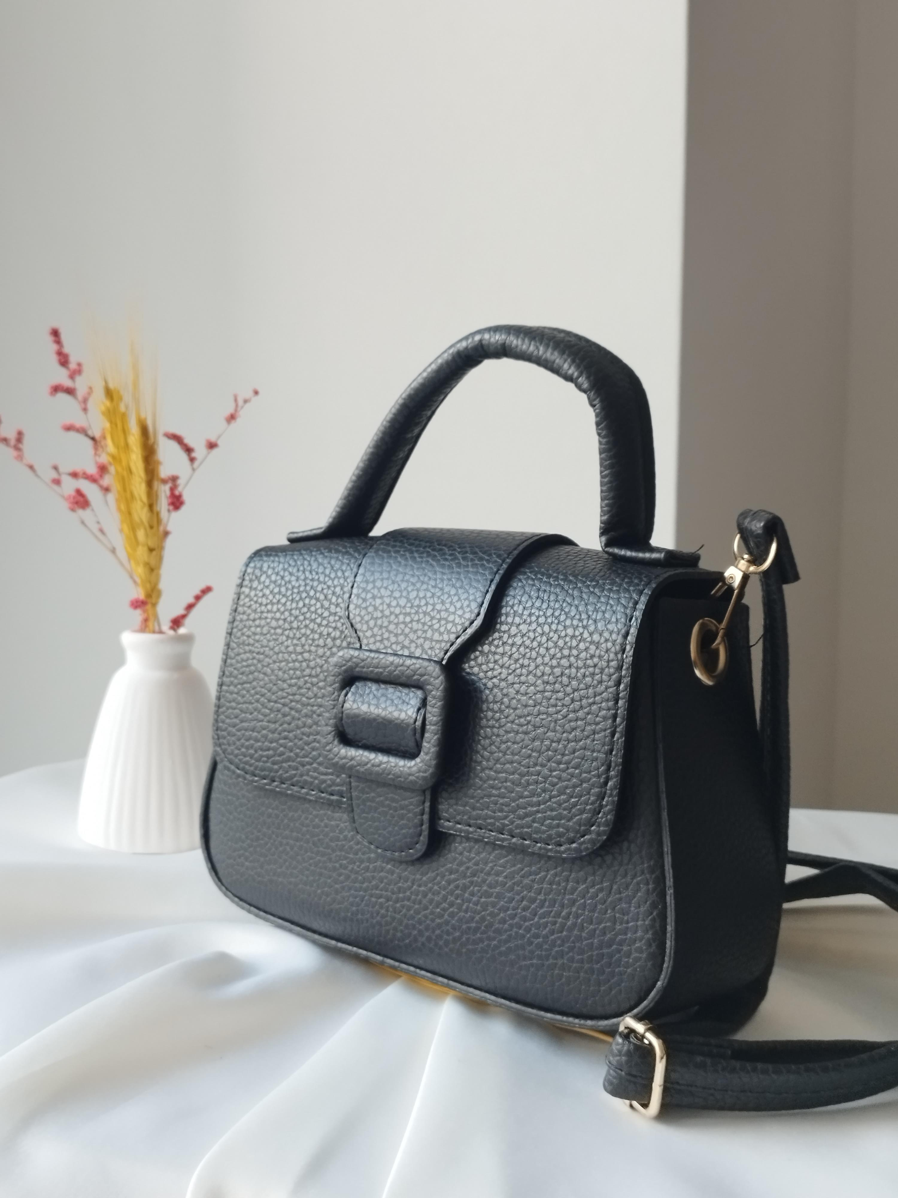 Kaliteli suni deri malzemesi, manyetik çıtçıt kapaması ve şık omuz askısıyla hem dayanıklı hem de fonksiyonel bir kullanım sağlar. Siyah rengin asil görünümü, ister klasik ister modern tarzda olsun, kombinlerinizin en göz alıcı tamamlayıcısı olacak.