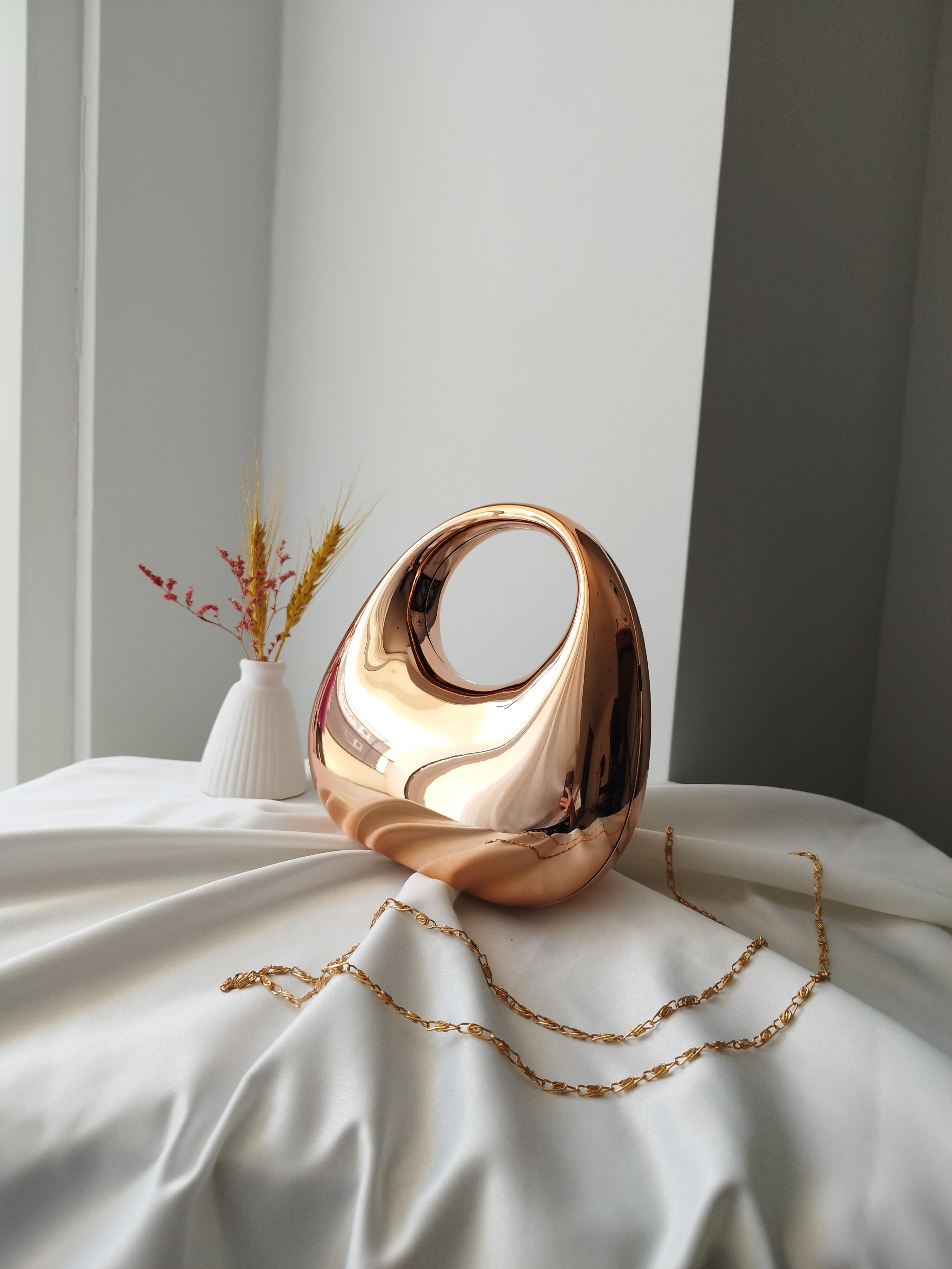 Oval Tutmalı Kadın Abiye Çanta Rose Altın, ışıltılı tasarımı ve modern duruşuyla özel günlerinize zarif bir dokunuş katar. Rose altın rengin sofistike parıltısı, düğün, nişan, davet ve parti kombinlerinizde göz alıcı bir etki yaratır. Oval tutma detayı ile şık bir görünüm sağlarken kompakt boyutuyla telefon, makyaj malzemesi ve küçük kişisel eşyalarınızı taşımak için idealdir. Zarafet ve fonksiyonelliği bir arada sunar.