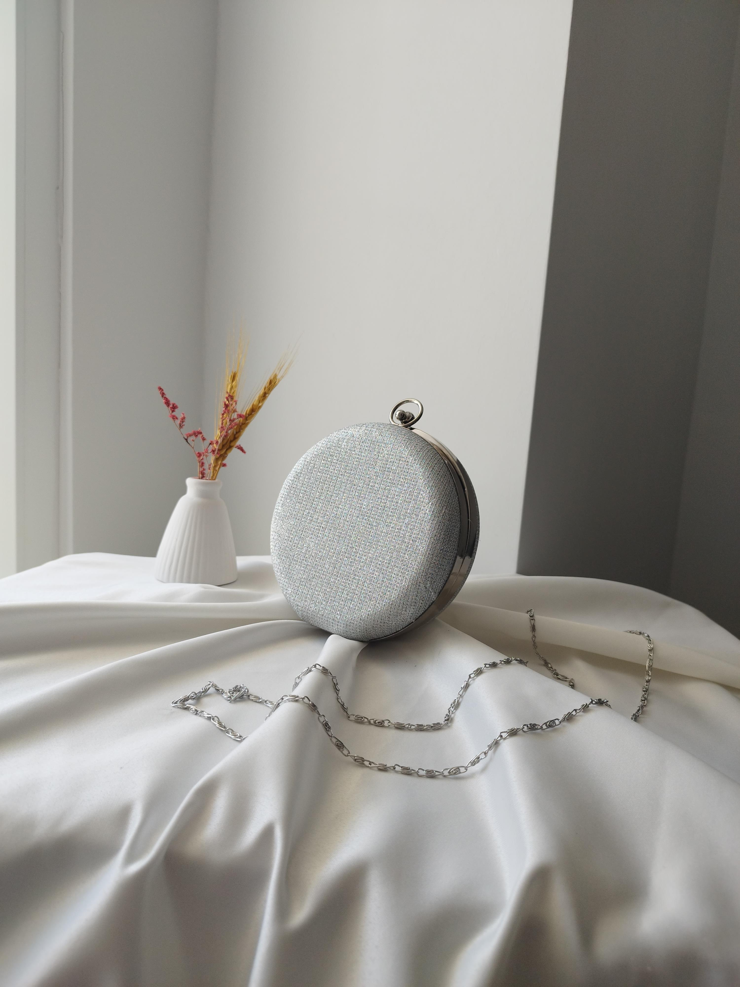 Simli Yuvarlak Model Kadın Abiye Çanta Gümüş, modern yuvarlak formu ve parlak simli yüzeyiyle özel günlerde zarif bir stil sunar. Kompakt boyutu sayesinde telefon, makyaj malzemeleri ve küçük aksesuarlarınızı rahatlıkla taşıyabilirsiniz. Gümüş rengin ışıltısını yuvarlak tasarımın modernliğiyle buluşturan bu model, düğün, nişan, davet, parti ve mezuniyet kombinlerinin gözde tamamlayıcısıdır. El çantası olarak ya da zincir askısıyla omuzda şık bir şekilde kullanılabilir.