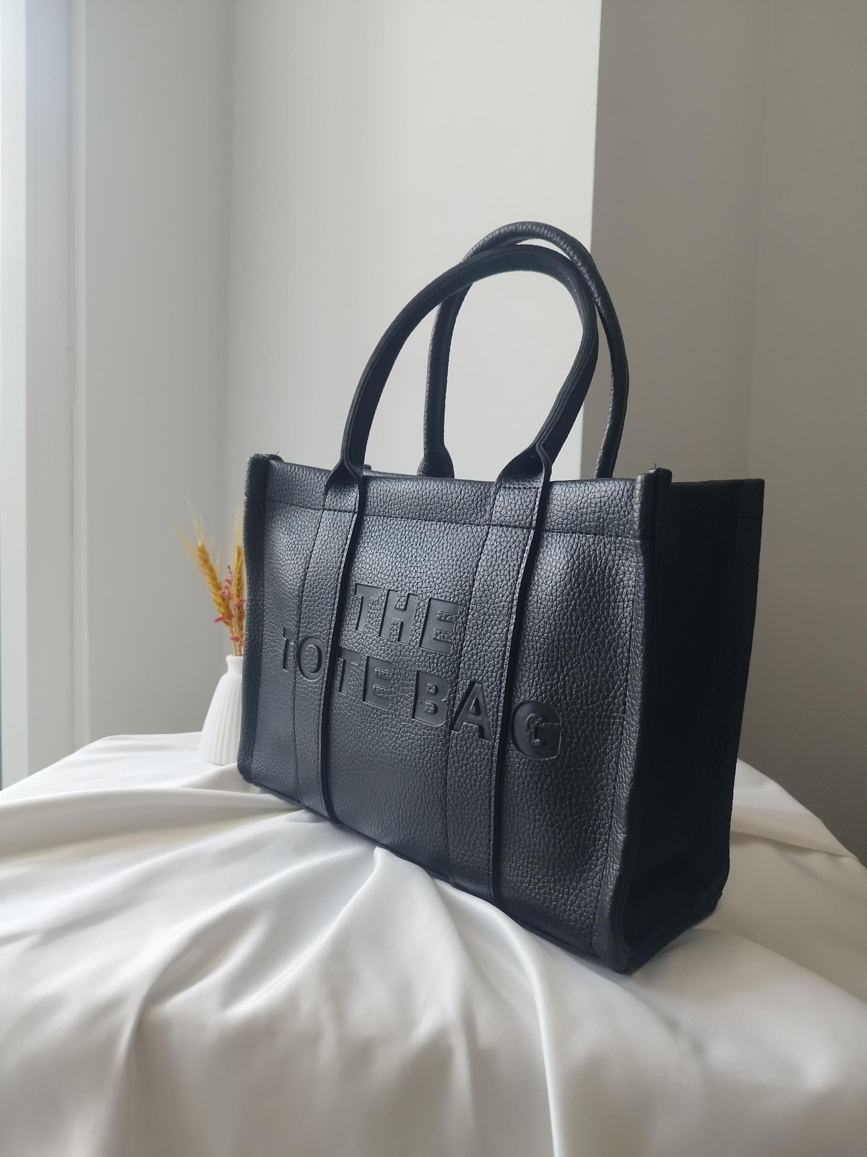The Tote Bag Deri Kadın Omuz Çanta Siyah, minimalist tasarımı ve geniş iç hacmiyle günlük kullanımda hem şıklık hem de fonksiyonellik sunar. Siyah rengin zamansız zarafetiyle her kombine uyum sağlayan bu model, kaliteli suni deri malzemesiyle uzun süreli kullanım için idealdir. Güçlü tutma sapları ve omuz askısı sayesinde ister elde ister omuzda rahatça taşınabilir. Hem iş hayatında hem günlük şehir hayatında stilinizi tamamlayan modern bir parçadır.